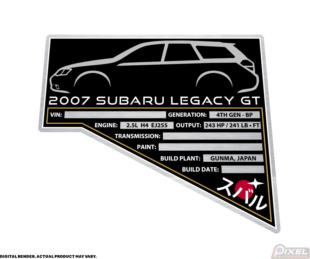 2007 SUBARU LEGACY GT WAGON Engine Bay Build Plaque
