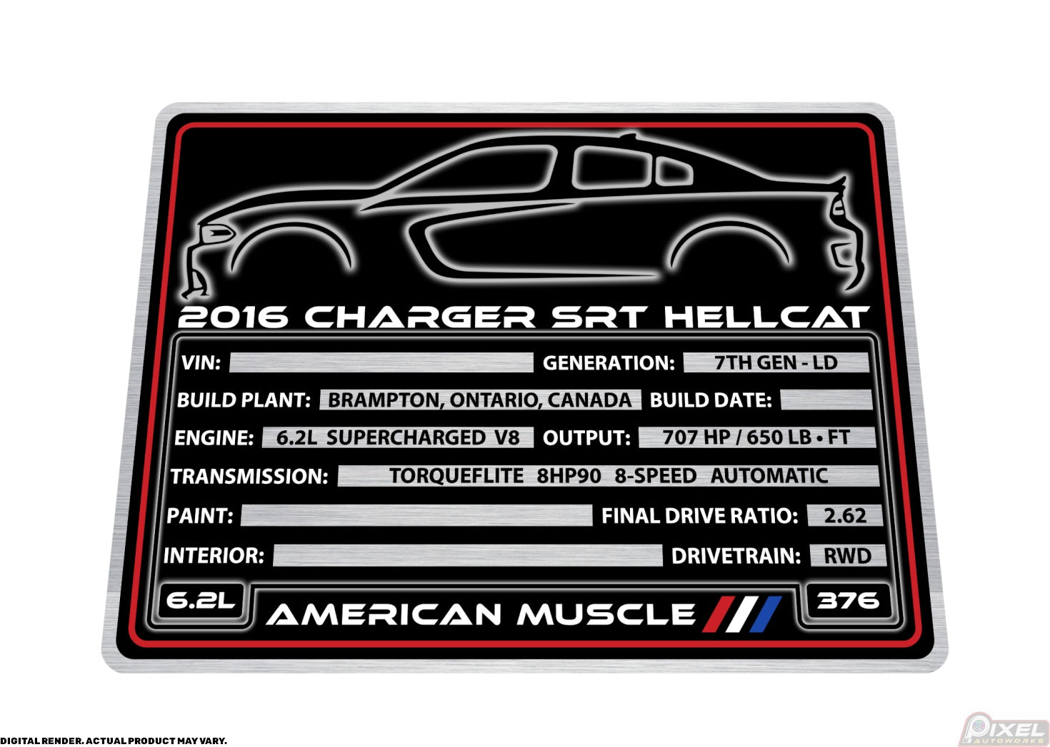 2016 DODGE CHARGER SRT HELLCAT Engine Bay Build Plaque