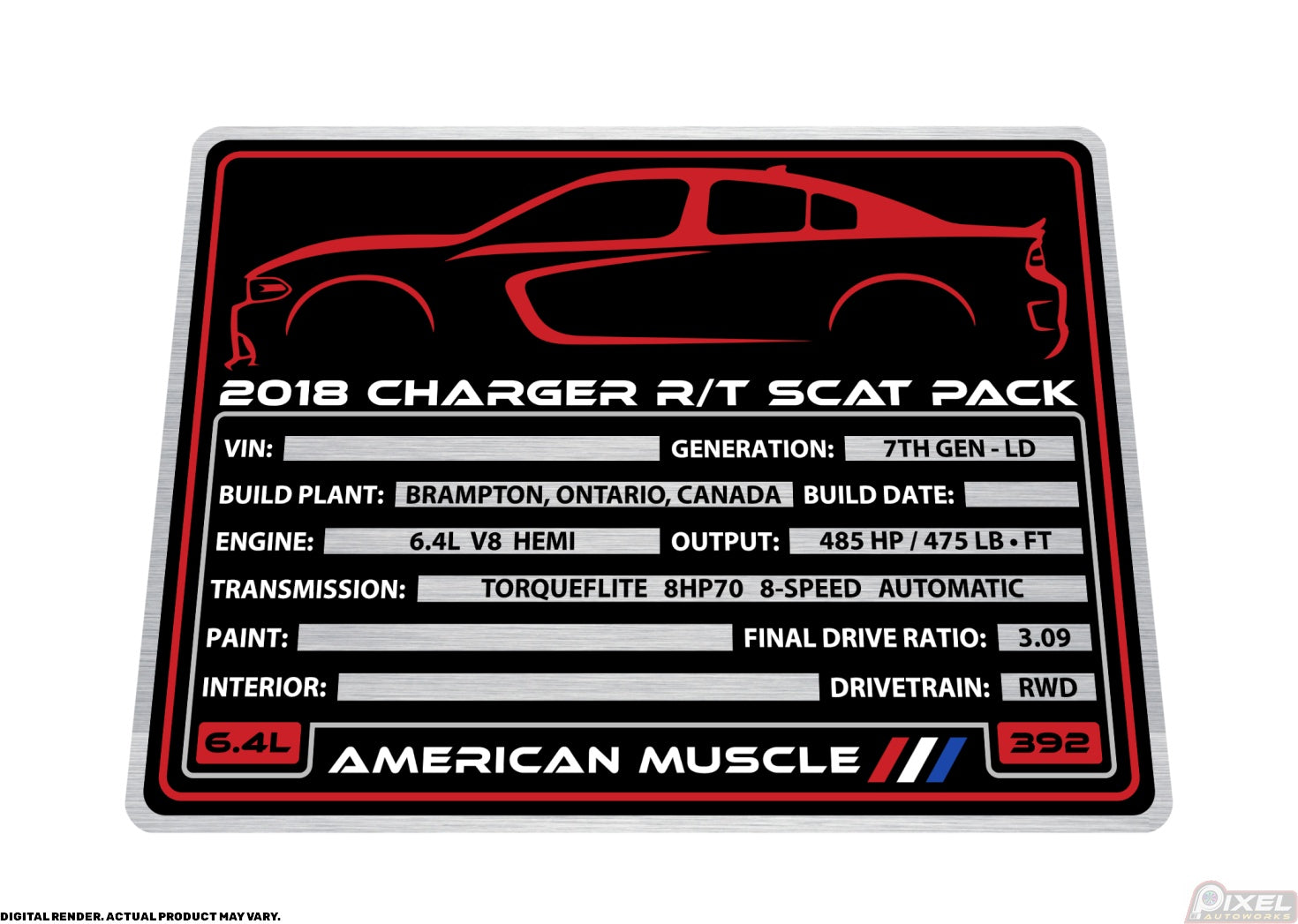 2018 DODGE CHARGER R/T SCAT PACK Engine Bay Build Plaque