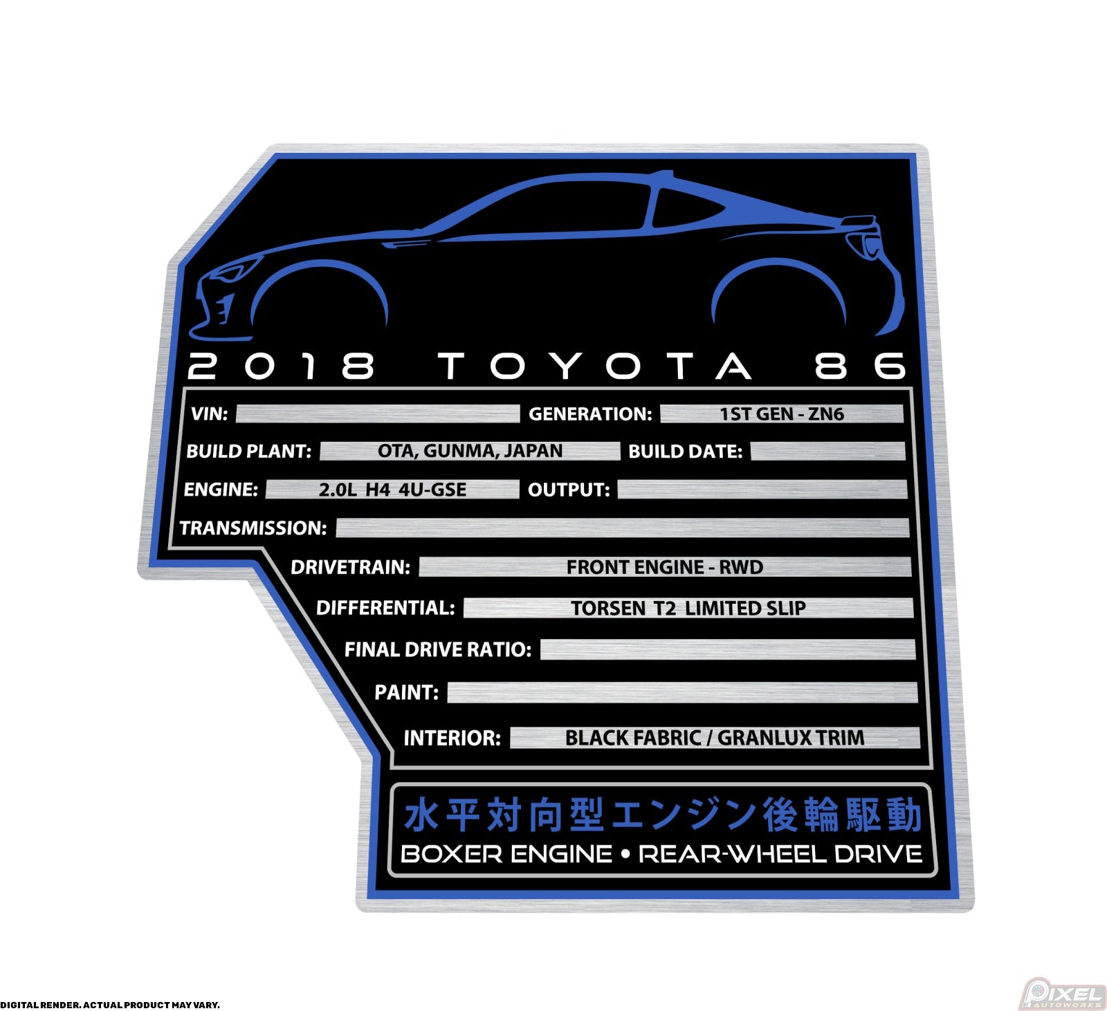 2018 TOYOTA 86 Engine Bay Build Plaque