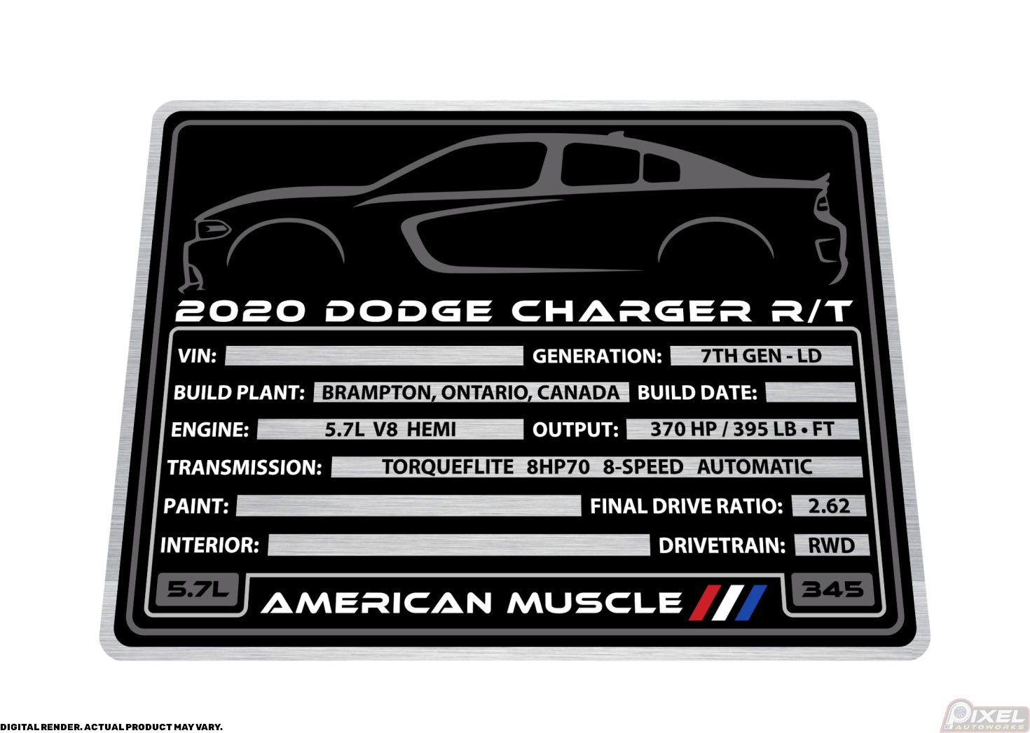 2020 DODGE CHARGER R/T Engine Bay Build Plaque