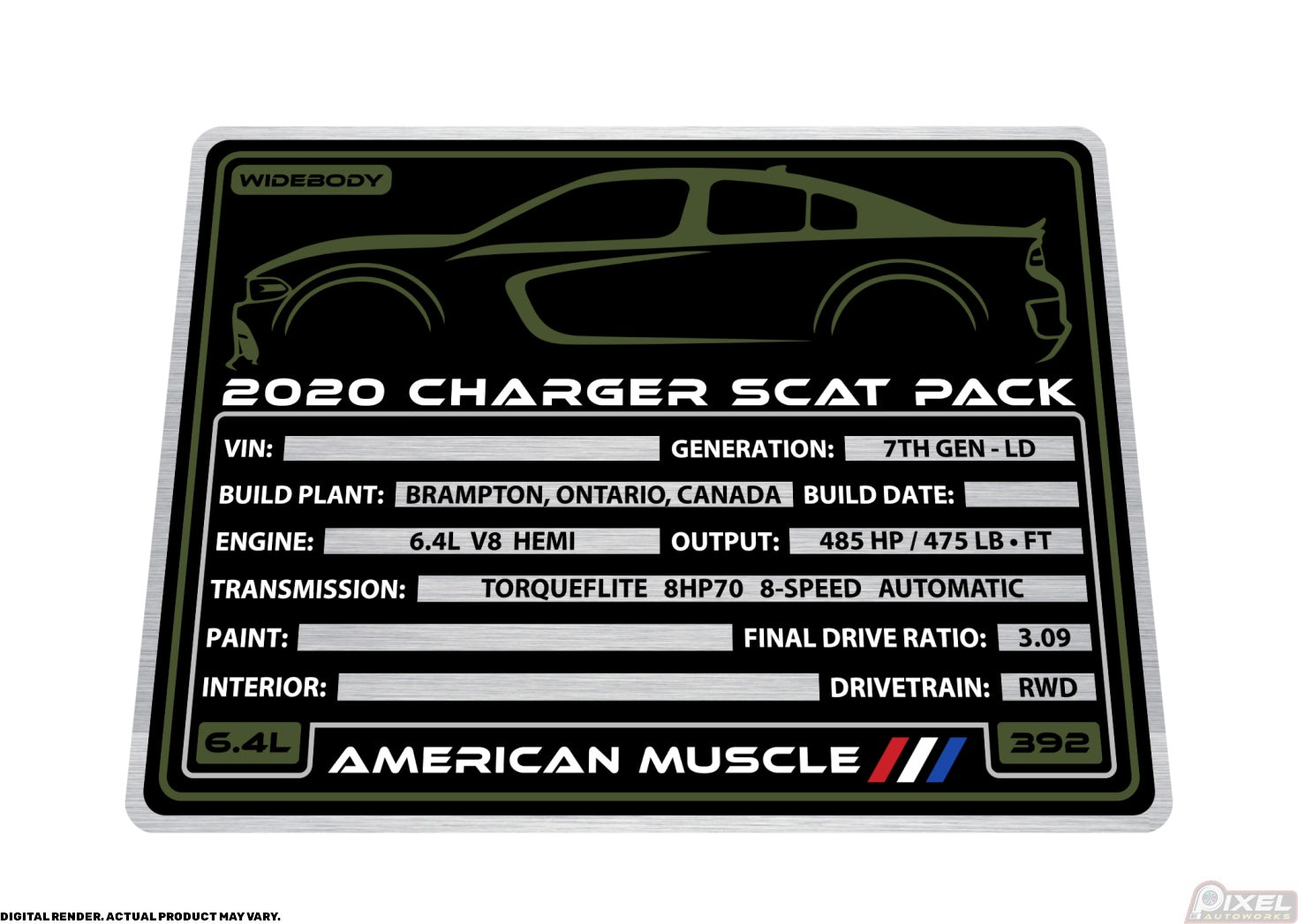 2020 DODGE CHARGER SCAT PACK WIDEBODY Engine Bay Build Plaque