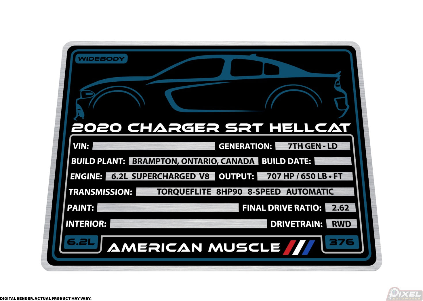 2020 DODGE CHARGER SRT HELLCAT WIDEBODY Engine Bay Build Plaque