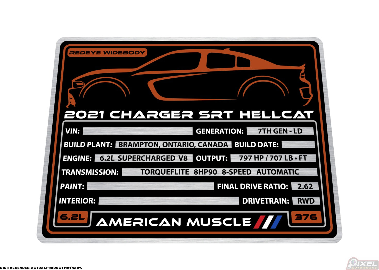 2021 DODGE CHARGER SRT HELLCAT REDEYE WIDEBODY Engine Bay Build Plaque