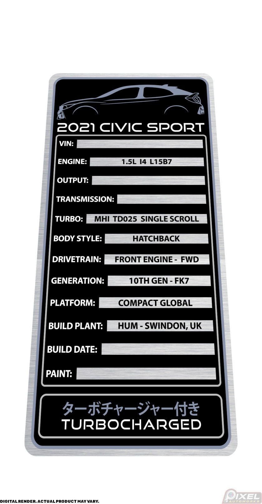 2021 HONDA CIVIC SPORT HATCHBACK Engine Bay Build Plaque